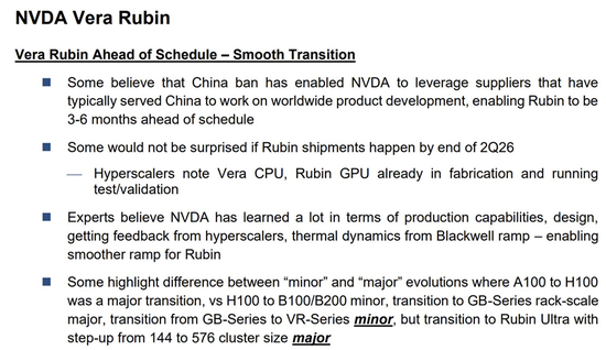 据华尔街见闻此前文章,Evercore的调研还指出了产品代际演进的差异,一些业内人士强调了“minor”(小幅演进)和“major”(大幅演进)之间的区别。其中从H100到B100/B200被视为minor过渡,而到GB-Series机架级系统是major演进,从GB-Series到VR-Series是minor,但到Rubin Ultra的过渡伴随着集群规模从144扩大到576则是major升级。