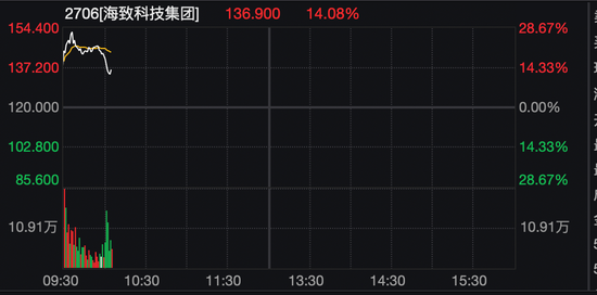 AI应用股亦走强,海致科技集团盘初一度涨超28%,目前涨幅收窄至约14%。