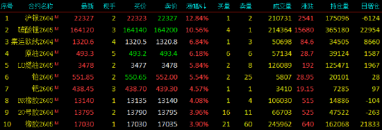 2026年2月24日,国内期货主力合约涨多跌少。沪银涨超12%,涨超10%,集运欧线、SC涨超6%,低硫(LU)、铂涨超5%,钯、张超4%。跌幅方面,多晶硅跌超4%,、跌超2%。