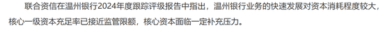 从更长周期看,温州银行核心一级资本充足率连续多年下滑,反映出在业务扩张与风险暴露的双重影响下,资本消耗速度远超补充能力。联合资信在评级报告中明确指出,温州银行业务的快速发展对资本消耗程度较大,核心一级资本充足率已接近监管限额,核心资本面临一定补充压力。