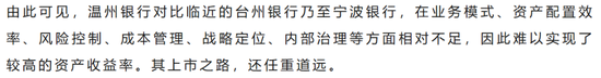 2024年,尽管温州银行总资产领先台州银行,但台州银行营业收入、净利润两项关键指标均远高于温州银行。此外,温州银行的净息差虽较同比有所上升,但盈利能力并未出现实质性进步。据《财经野武士》分析认为,温州银行在业务模式、资产配置效率、风险控制、成本管理、战略定位、内部治理等方面相对不足,因此难以实现较高的资产收益率。