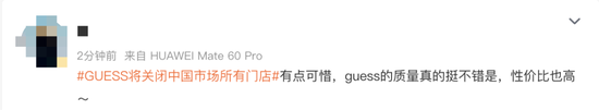 日前,知名国际时尚品牌GUESS发布消息称,其在中国所有线上、线下店铺将在3月底前正式关闭,引发网友热议。