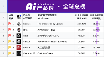图13:豆包APP在11月全球AI产品榜中排名第二 |