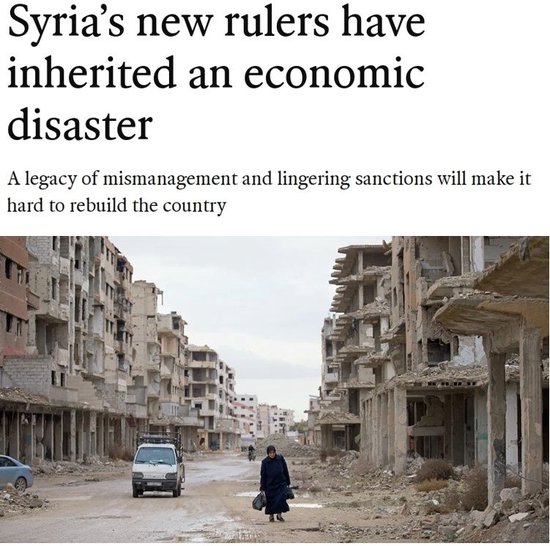 当地时间1月2日,英国《经济学人》刊发文章认为,包括外部制裁在内的一系列问题,将令叙利亚重建面临“多重挑战”。