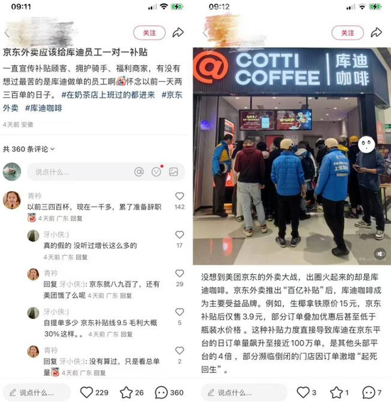 和星巴克的自救逻辑不一样,库迪咖啡简直被京东外卖带上了一个新高度。