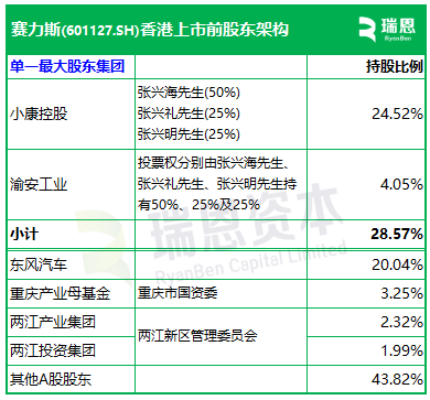 招股书显示,赛力斯在香港上市前的股东架构中,