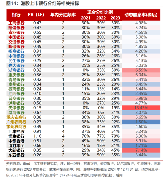 前述分析师余金鑫亦强调,从历史来看,多数银行分红比例稳步提升,且波动性较小。考虑通过港股通投资按20%税率扣税情形下,部分港股银行的股息率仍相对较高,且分红稳定性较强。