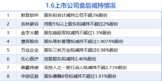 据统计,1月7日,盘后包括、、、、、、在内的7家A股上市公司披露增持情况。包括、、、、、、、华创证券在内的8家A股上市公司披露减持情况。