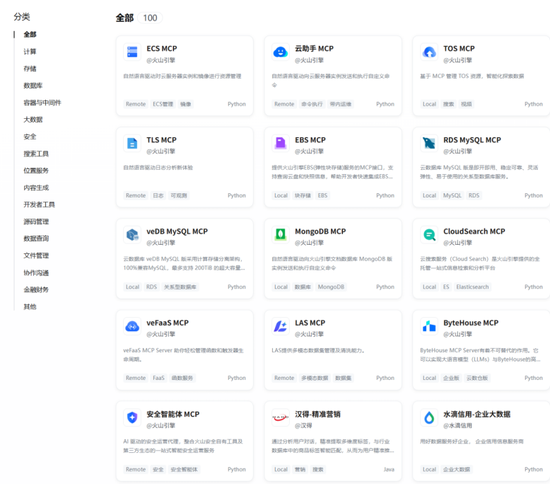 目前国内大厂均先后拥抱MCP机制,大厂的生态作用也可进一步凸显。据钛媒体,4月9日阿里云百炼上线业界首个全生命周期MCP服务,同日,腾讯云上线正式发布“AI开发套件”,旗下的OceanBase也已实现MCP协议的对接。百度则引入基于百度搜索的MCP Server发现平台和MCP Server服务。目前阿里百度腾讯字节旗下一部分AI智能体产品均支持MCP协议。字节的火山引擎构建了大模型生态广场,提供各类字节旗下或第三方的MCP。