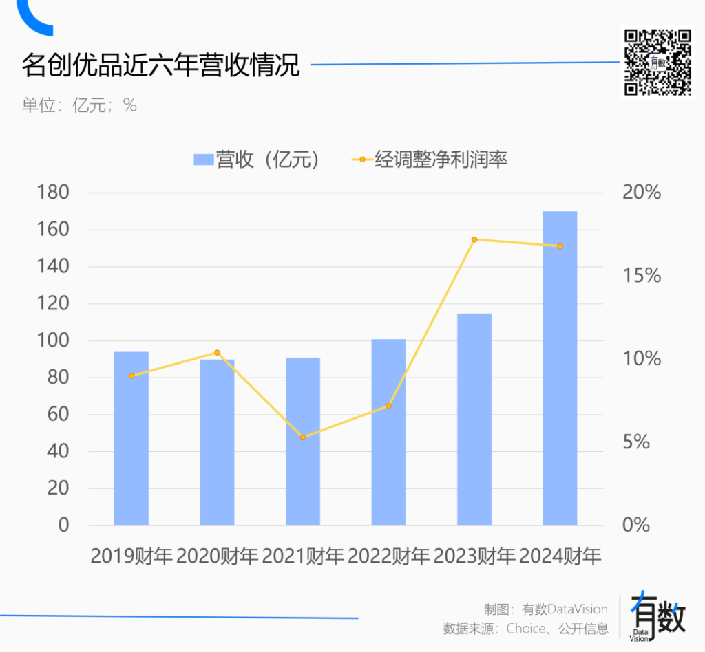 2019-2021年间,名创优品营收在90亿元上下浮动,经调整净利润率却在2021财年同比近乎腰斩至5.3%。