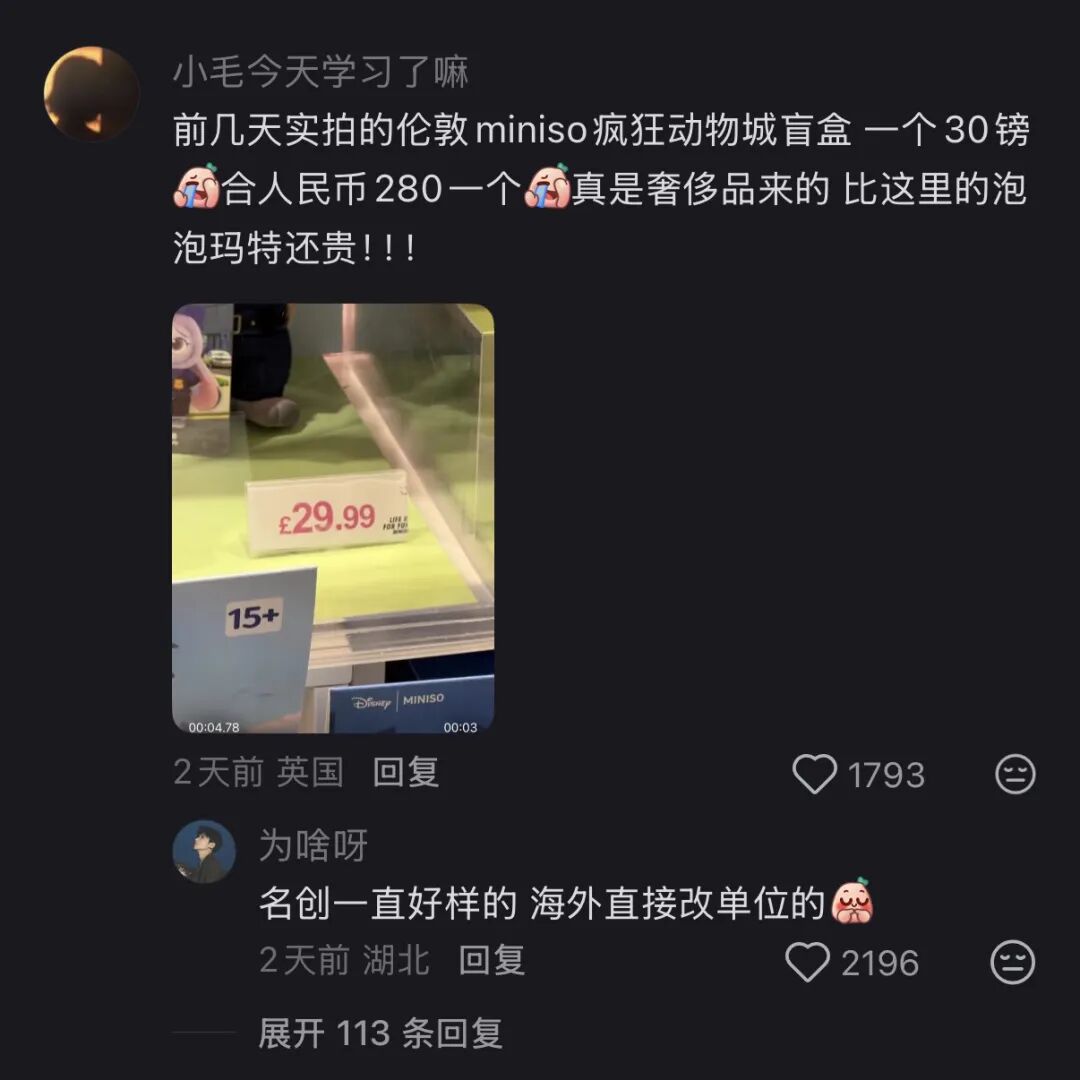 从20美元的颈枕和水杯,到打完六折还要5美元一颗的美妆蛋,海外门店卖着与国内门店相差无几的日用百货,价格却让家乡网友不敢相认。
