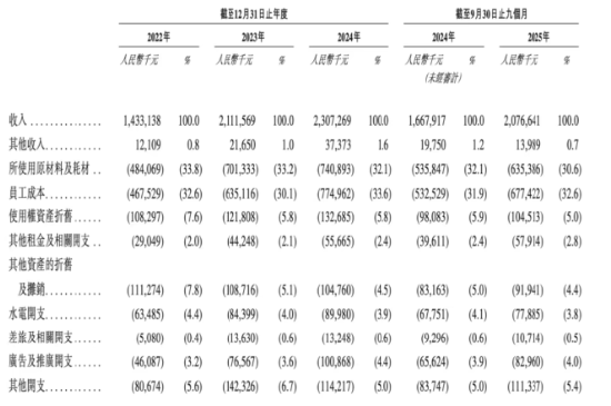 这份更新后的招股书也向市场披露了巴奴最新的成绩单。数据显示,2025年前三季度,公司实现收入20.77亿元人民币,同比增长24.5%,净利润1.56亿元,同比增长58.46%,经调整净利润2.36亿元,同比增长80.78%。
