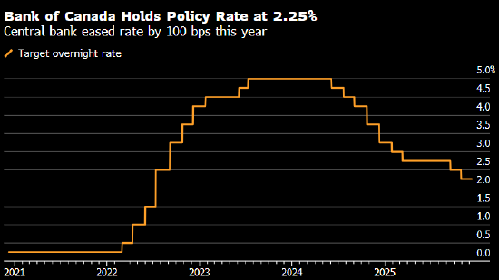 加拿大央行官员本月早些时候决定将隔夜利率维持在2.25%,但他们不确定下一次政策调整是再次降息还是转为加息。