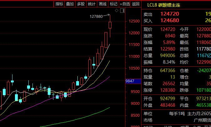 另外,广期所最新消息显示,自2025年12月26日交易时起,碳酸锂期货LC2601、LC2602、LC2603、LC2604、LC2605、LC2606、LC2607、LC2608、LC2609、LC2610、LC2611、LC2612合约的交易指令每次最小下单数量中的每次最小开仓下单数量由1手调整为5手、每次最小平仓下单数量维持1手。