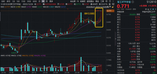 【彻底爆了!军工ETF华宝(512810)日内迭创逾3年新高,周线豪取5连阳!商业航天5股涨停,7股历史新高】