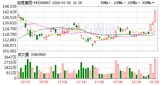 2026年港股第一个交易日,百度(BIDU.O,09888.HK)非全资附属公司昆仑芯(北京)科技股份有限公司(以下简称“昆仑芯”)确定分拆上市受到市场关注,受此重磅利好刺激,百度港股股价在1月2日大涨9.35%,百度于美股纳斯达克挂牌的股价则更是大涨15.03%,均创下两年内新高。