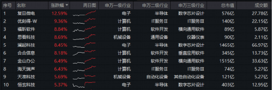 成份股方面,领涨超12%,涨逾9%,、、、涨超8%。权重股方面,涨超6%,涨逾5%,涨超2%。