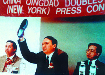 1992年,国营第九橡胶厂正式更名为双星集团。同年,双星作为中国企业在纽约召开新闻发布会,汪海在此次发布会上“脱鞋打广告”,引起震动。