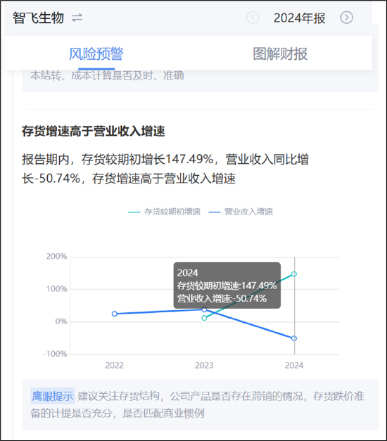 2024年,鹰眼预警系统对智飞生物存货发出预警。