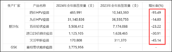 然而,公司2024年代理产品营收规模出现腰斩,代理产品收入由2023年的519亿元大幅下降至2024年的247亿元。值得注意的是,公司代理核心产品批签发量全面崩盘,2024年全年批签发量四价HPV疫苗下滑95.49%;九价HPV疫苗下滑14.8%。