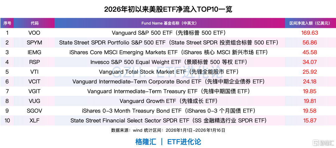 尽管大盘蓝筹股标普500年初表现落后,资金依旧青睐先锋标普500 ETF,年初以来大幅“吸金”169亿美元,规模处断层第一。