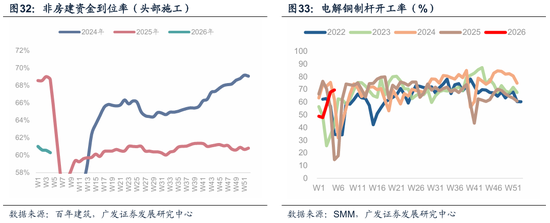 除传统基建外,电力侧开工高频数据表现较好。电解铜制杆开工率、铝线缆开工率等数据在近期均录得近年同期高位水平(图)。