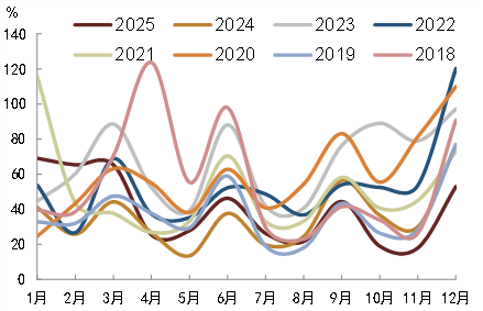 注:以每月最后5个交易日资金利率振幅均值衡量,当日资金利率振幅=(最高利率-最低利率)/开盘利率;数据截至2025年12月31日