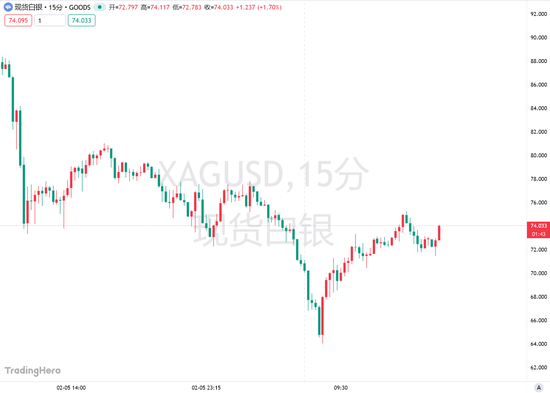 现货白银在周五亚洲交易时段最高涨幅达6.2%,此前一度跌至每盎司64美元。而在前一个交易日,白银价格重挫近20%,回吐了上月一轮惊人涨势带来的全部涨幅。黄格也在早盘回落之后迎来回升。