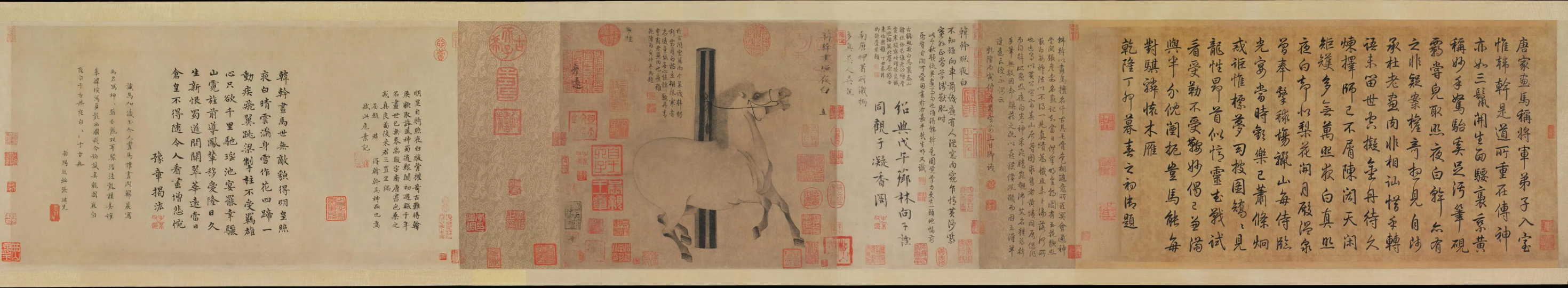 在马文化盛行的唐代,宫廷画家韩干在描绘唐玄宗坐骑“照夜白”时,强调其身部的圆润线条,刻画耳朵竖起、眼睛明亮等细节,《照夜白图》成为后世许多画家画马的范本。作者提到,画家们从事此类超越“形似”的创作,带有的一个世俗动机是,一旦笔下那匹马进入皇家马厩,画师就会得到一笔丰厚的报酬。