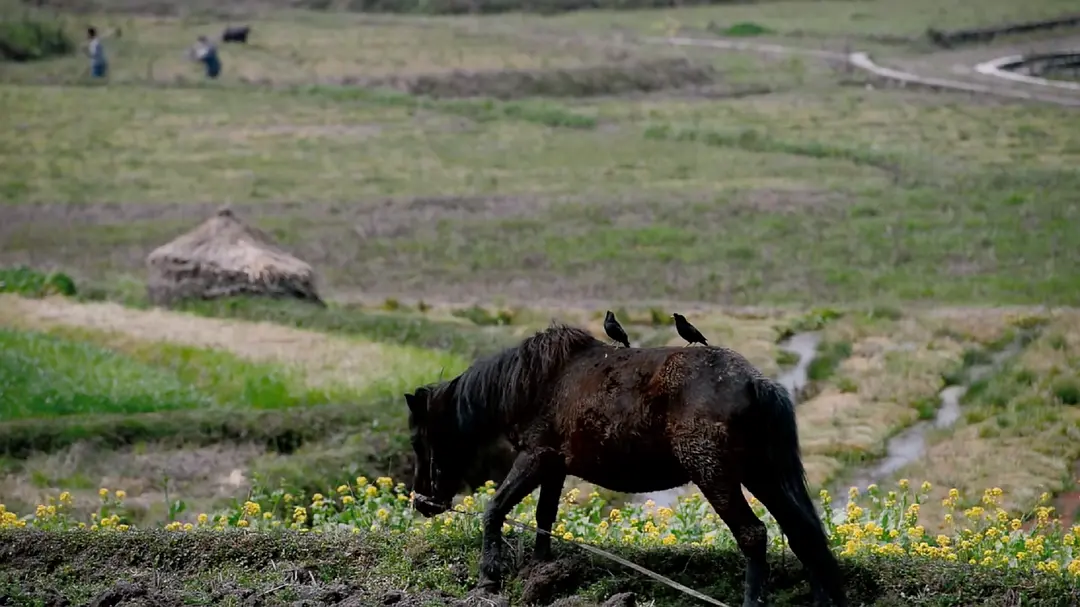 马以力量、耐力与对复杂地形的适应性,被持续投入到耕作、运输等重复性劳动中,逐渐脱离理想、权力以及“英雄坐骑”的文化想象。在这个阶段,与马有关的书写开始关照劳动与阶级视角。在《活着》一书中,还是少爷的福贵经常让一位妓女背着他去逛街,他骑在她身上被形容为“像是骑在一匹马上”,这一比喻呈现了身体支配与权力关系。在一些具有革命色彩的文学作品里,当书中人物喊出“不愿再当牛做马”时,是表达对剥削的反抗。在这些叙述里,马与人一道被置于劳动与被使用的位置之中,人与马的命运相互缠绕。