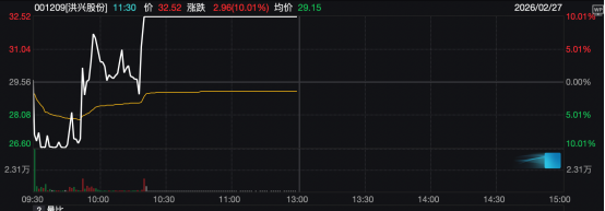 此前两个交易日,洪兴股份已连续涨停。公司昨日(2月26日)盘后发布股价异动公告称,公司主营业务为家居服为主的研发、设计、生产与销售,主营业务未发生重大变化,公司市场环境或行业政策未发生重大调整。